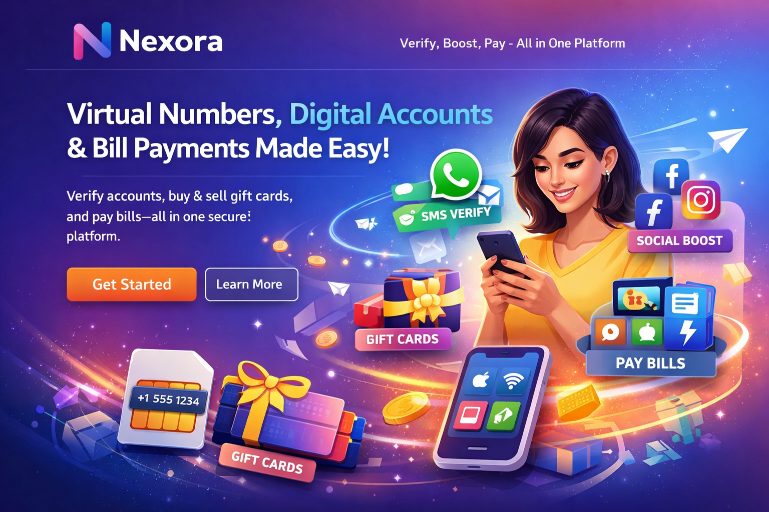 Virtual numbers, digital accounts, giftcards, bill payment, and social media boosting—all from one platform.